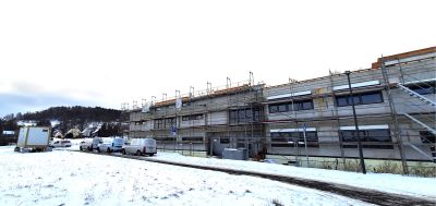 Die Rohbauarbeiten sind termingerecht in vollem Gange.